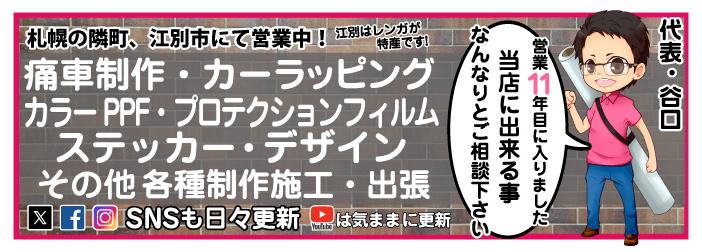 | ステッカー、看板等のその他制作、施工実績のギャラリーをご覧頂けます。 | 制作・施工させて頂いた「痛車」のギャラリーをご覧頂けます。 | 制作・施工させて頂いた「カーラッピング」のギャラリーをご覧頂けます。 |